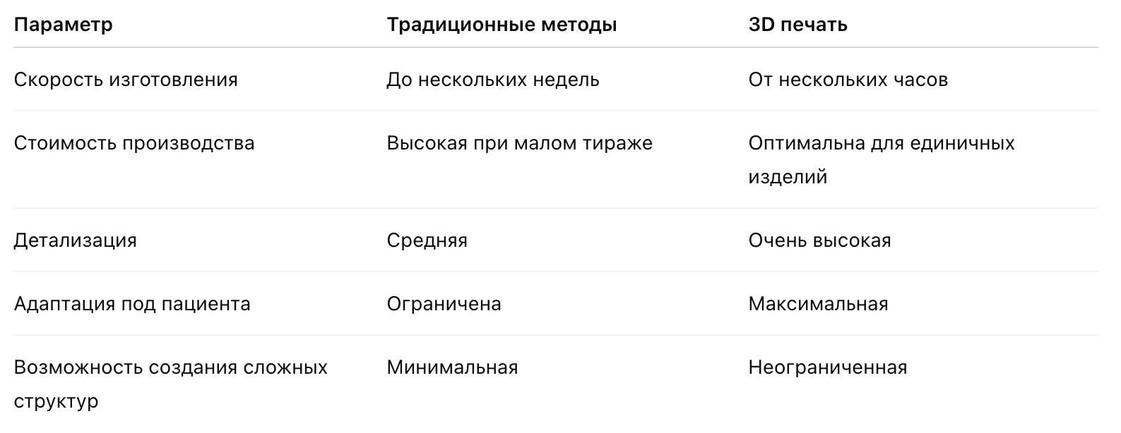 Использование аддитивных технологий в медицине дает целый ряд преимуществ: