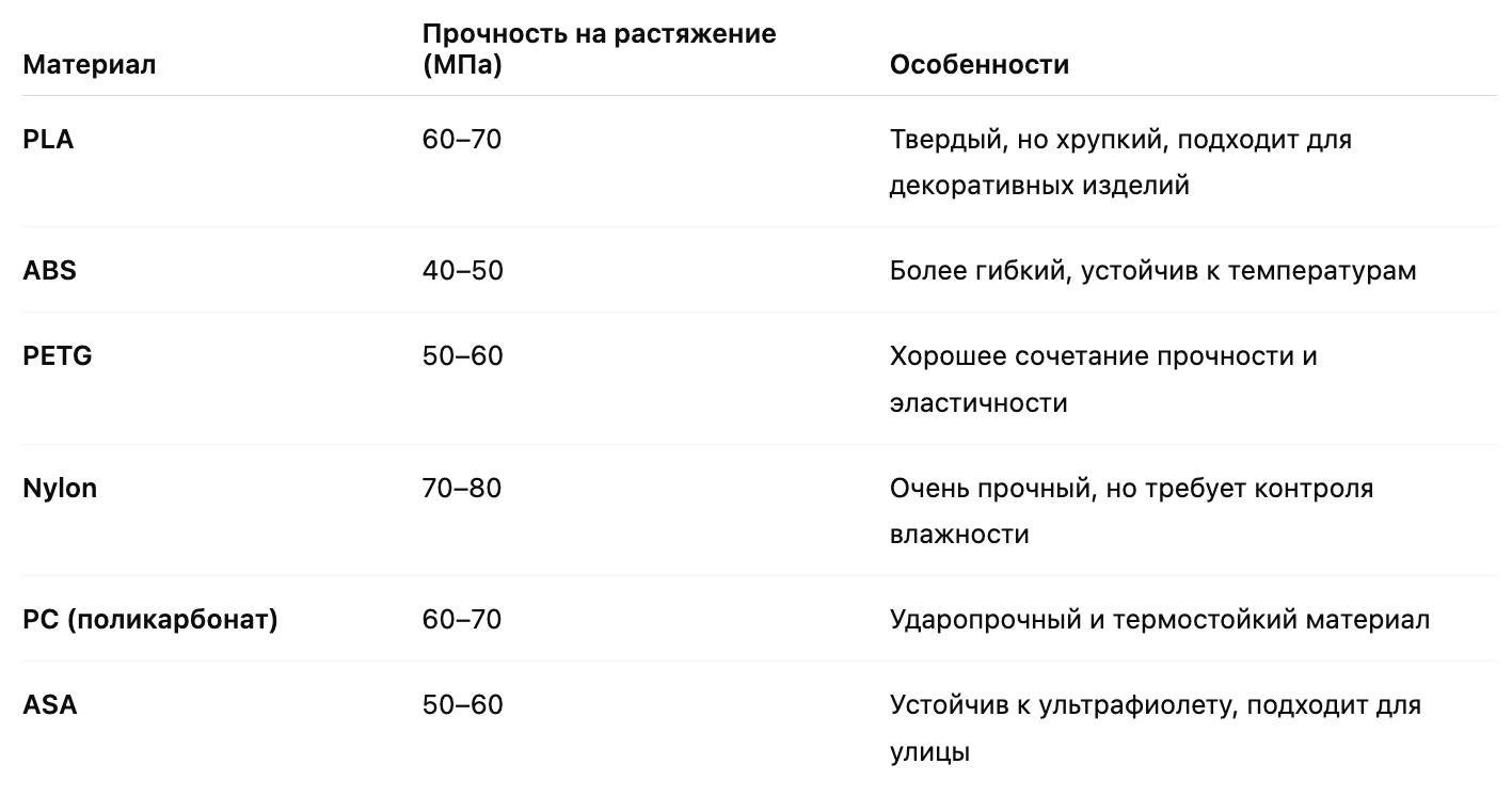 Прочность разных материалов для 3D печати